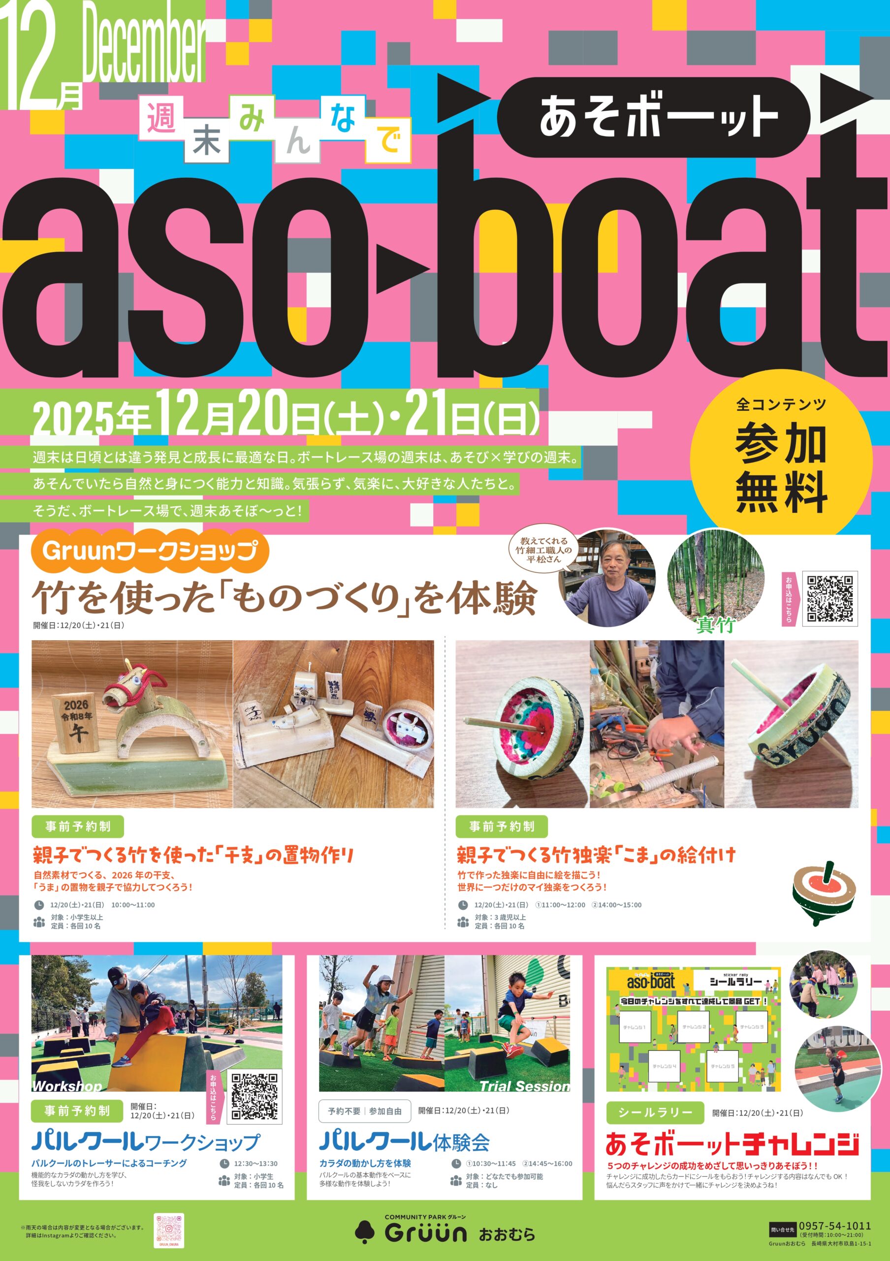 ボートレース大村で、竹を使った“ものづくり体験”や体をたっぷり動かせるパルクール、シールラリーなど